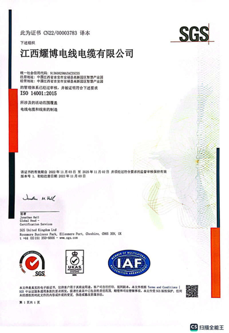 ISO14001-2015环境体系证书
